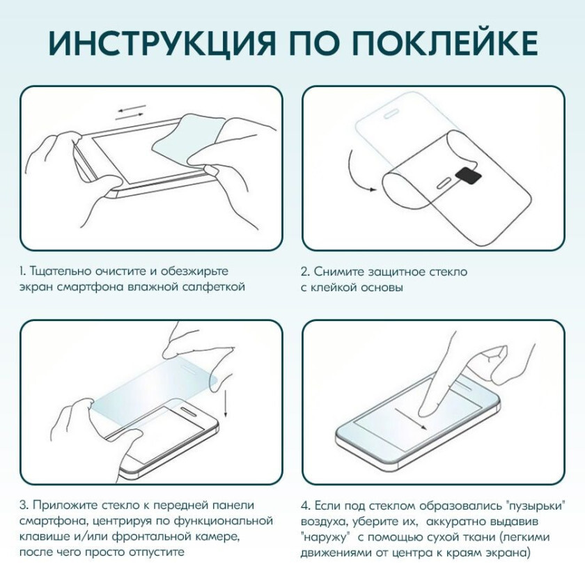защитное стекло, салфетка для очистки, инструкция